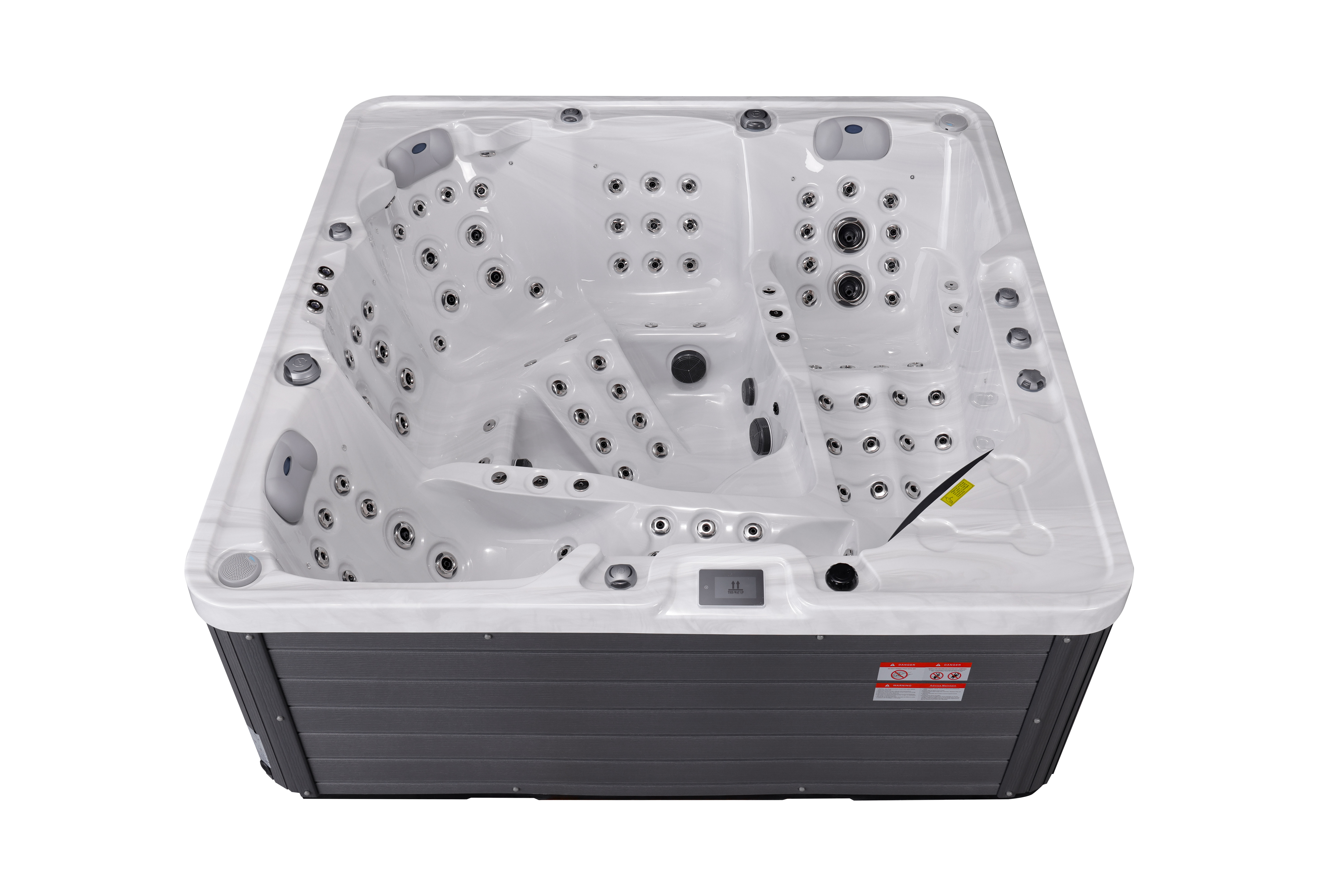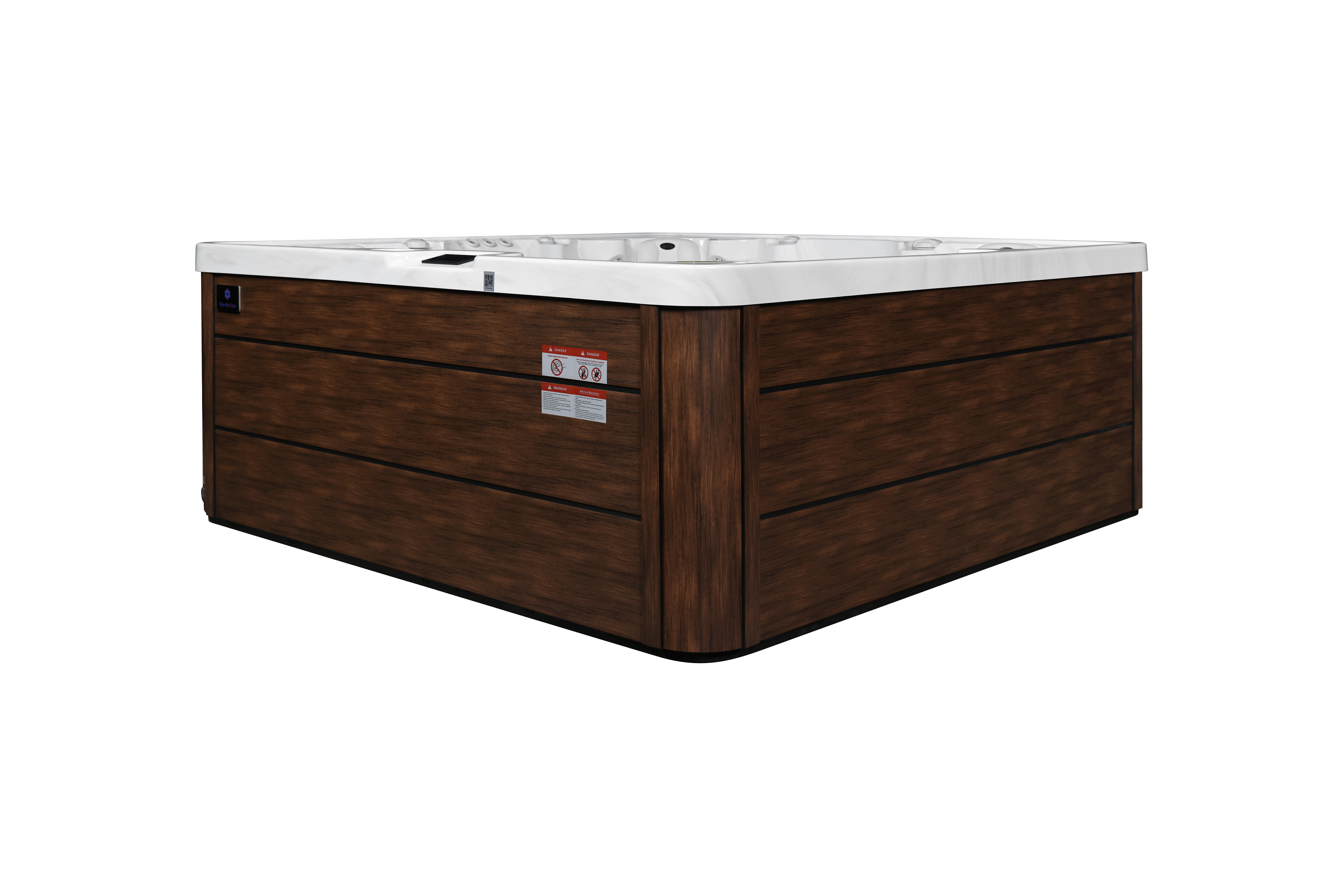 NordicSpa Tyur с размером чаши 2,25 x 2,25 м идеально подходит для установки как в помещении, так и на улице. Просторная квадратная чаша с тремя эргономичными подголовниками комфортно вмещает до пяти человек, создавая королевские условия для полноценного отдыха и общения.